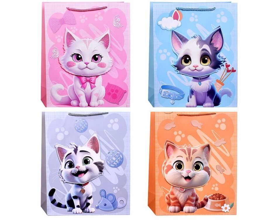 Пакет подарочный "Очаровательный зверек", в ассортименте, 32 х 26 см