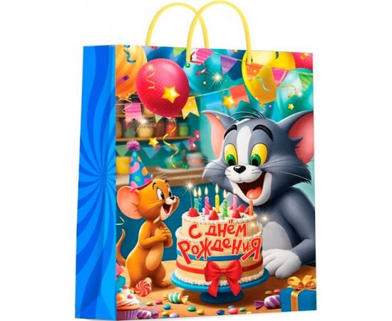 Пакет подарочный "С Днем Рождения! Торт со свечами", 26 х 32 см
