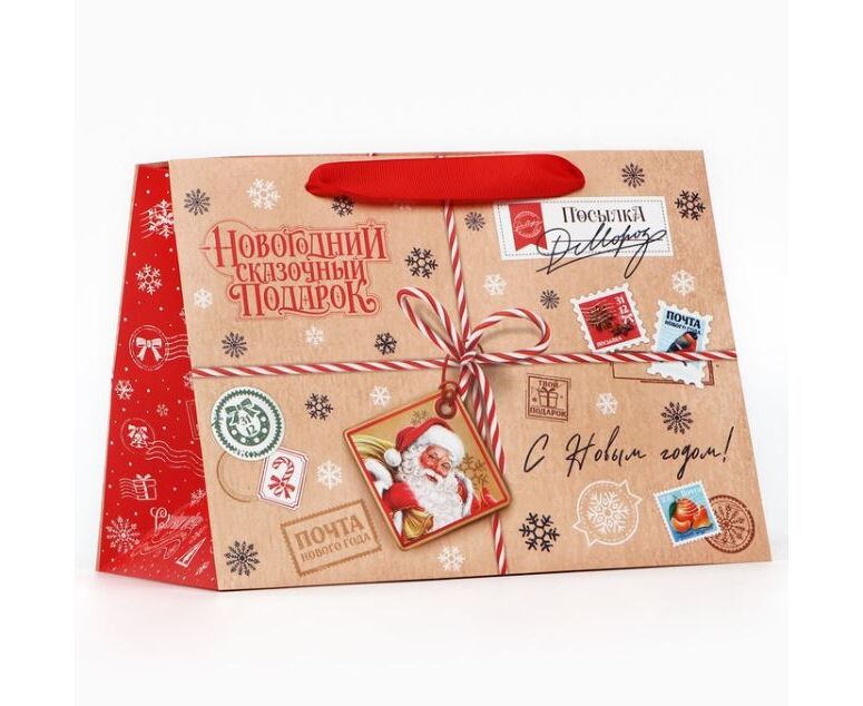 Пакет подарочный с широким дном "Новогодняя посылка" 25 х 19 см