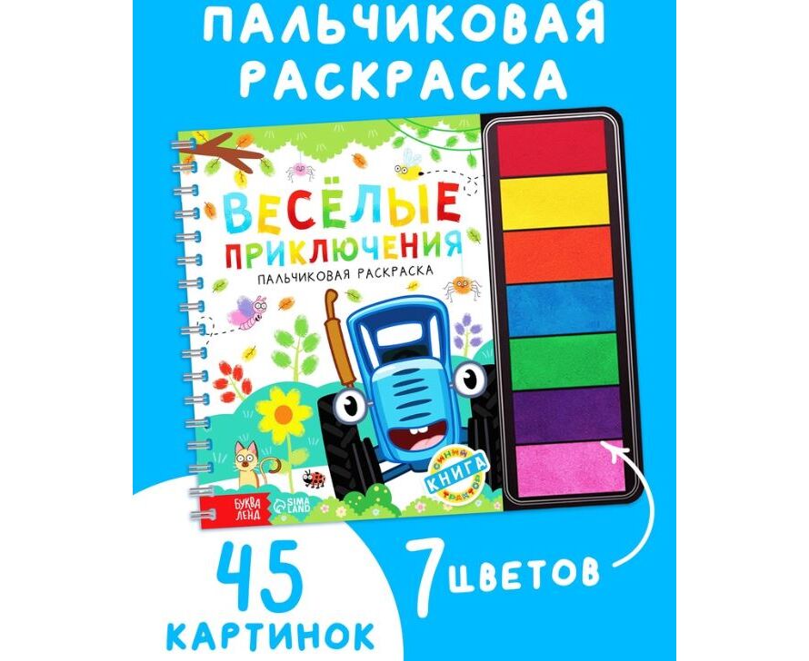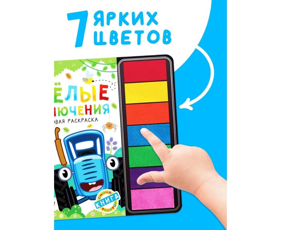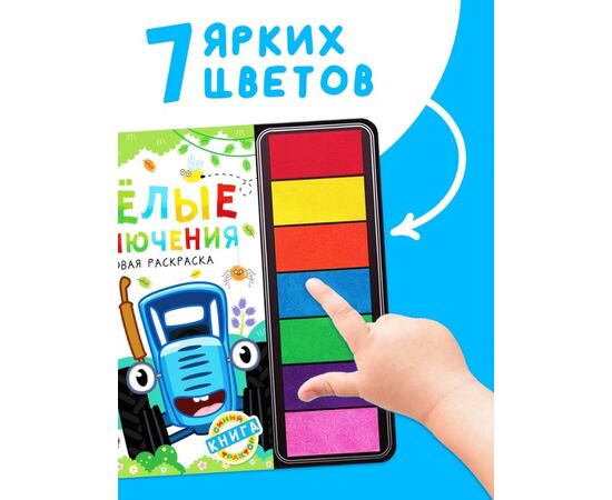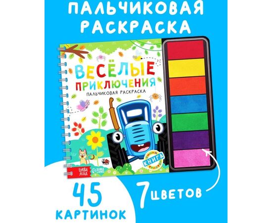 Пальчиковая раскраска с красками "Весёлые приключения. Синий трактор", 48 страниц