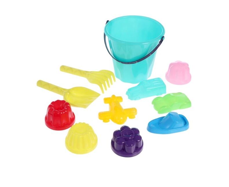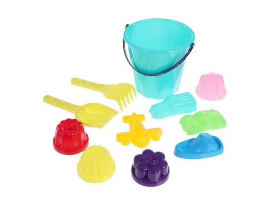 Песочный набор: ведро, лопатка, грабельки, 8 формочек
