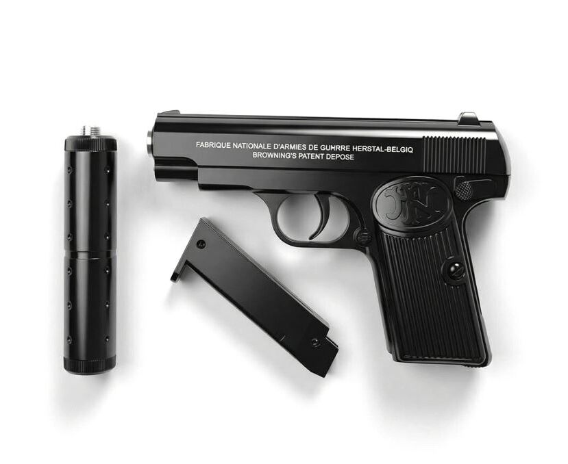 Пистолет металлический с глушителем "Browning FN Model 1910", 26 см