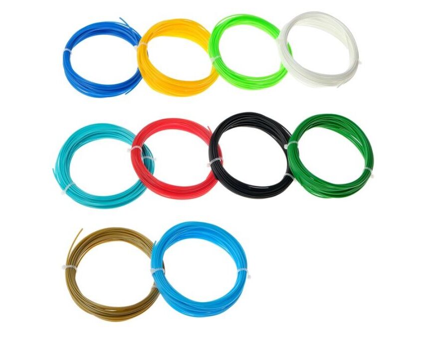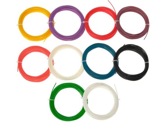 Пластик для 3D ручки, 10 цветов, 10 метров, для всех ручек кроме работающих на PLC пластике