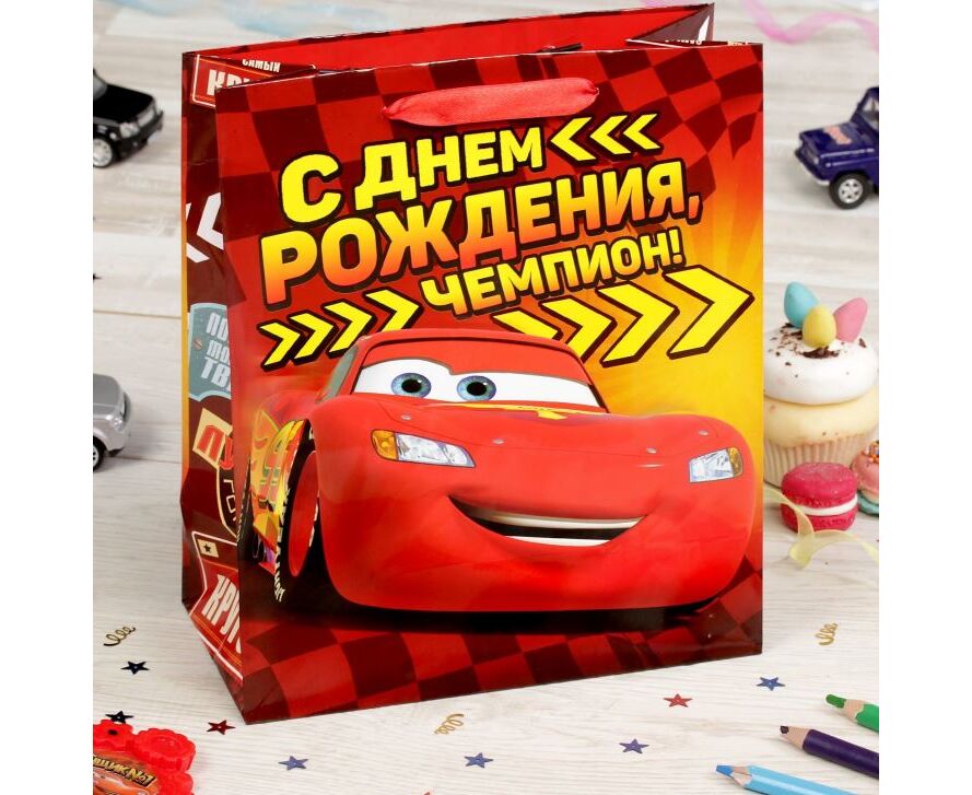 Подарочный пакет "Тачки.С днем рождения, чемпион" 31х40