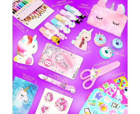 Подарочный набор 12 в 1 "Единорожки: сквиш, блокнот, пенал, карандаши"