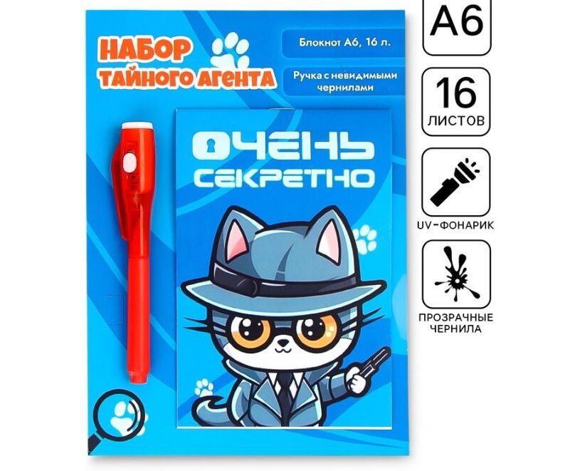 Подарочный набор, ручка шпион, блокнот А6, 16 л. "Очень секретно"