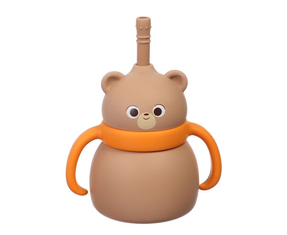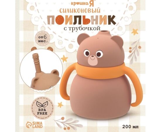 Поильник силиконовый с трубочкой, с ручками 6+ мес, 200 мл, бежевый, Крошка Я