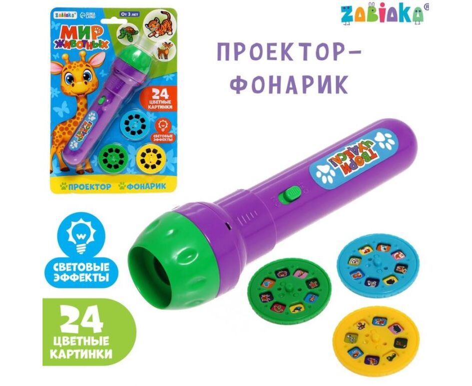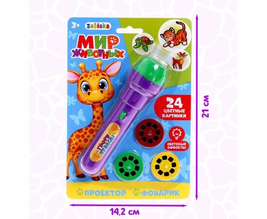 Проектор-фонарик "Мир животных" 3 слайда, 24 картинки
