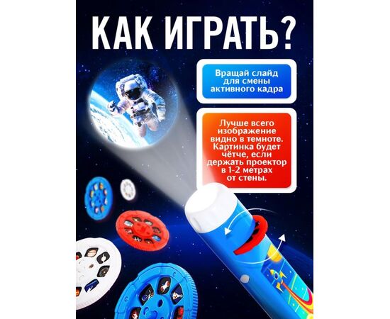 Проектор-фонарик "Полёт в космос" 6 слайдов, 48 картинок