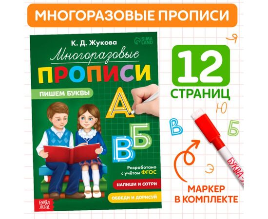 Прописи многоразовые "Пишем буквы", 12 стр., маркер