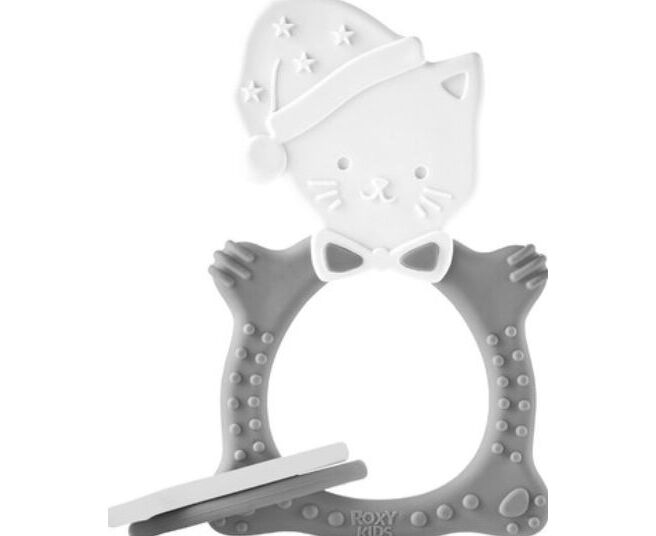 Прорезыватель "Котик в колпаке", цвет серый