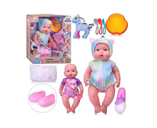 Пупс 40 см "Каролина", с комплектом одежды и посудкой
