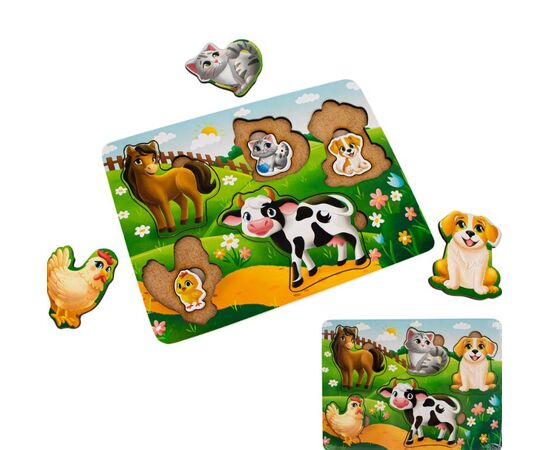 Рамки-вкладыши из дерева "Мама и малыши. Домашние животные"