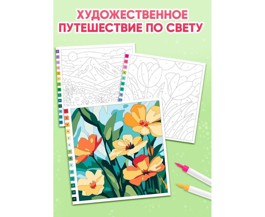 Раскраска картина по номерам "Прекрасные цветы", 14 картин