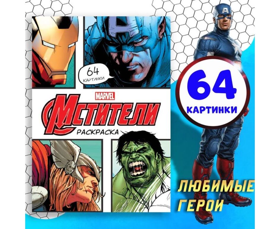 Раскраска "Мстители. Формат А4", 68 страниц