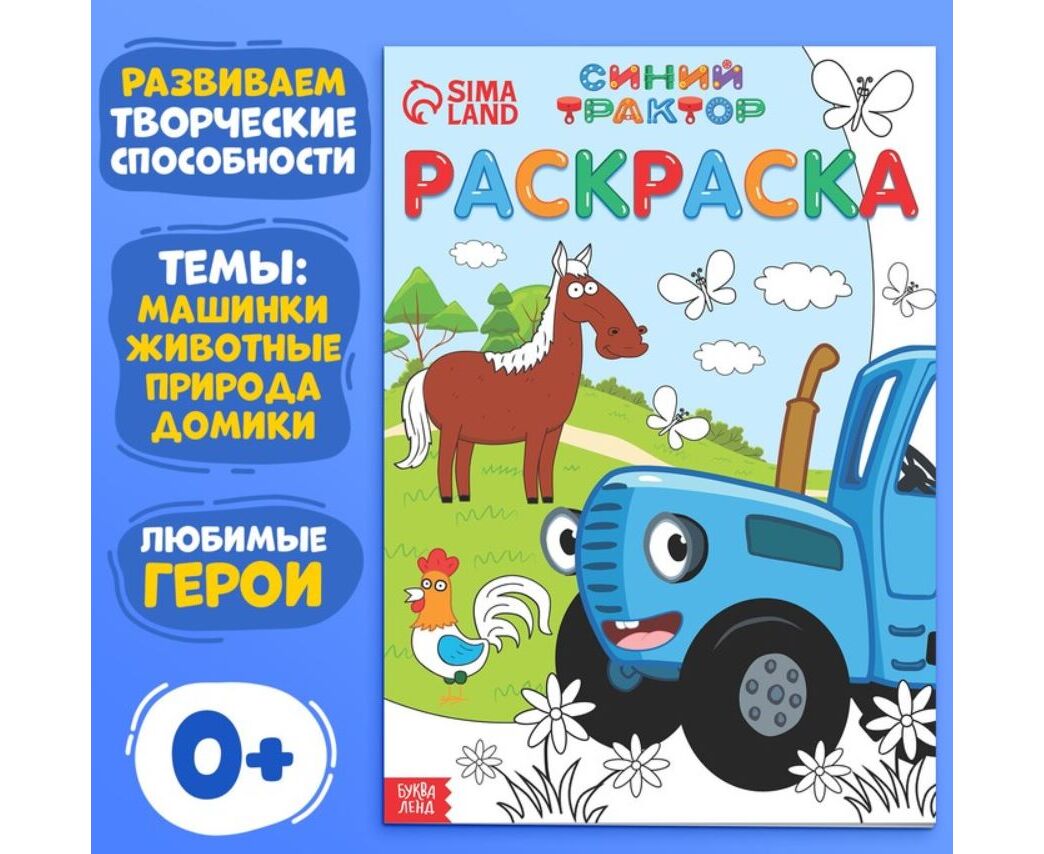 Раскраска "Синий трактор. Формат А4", 12 страниц