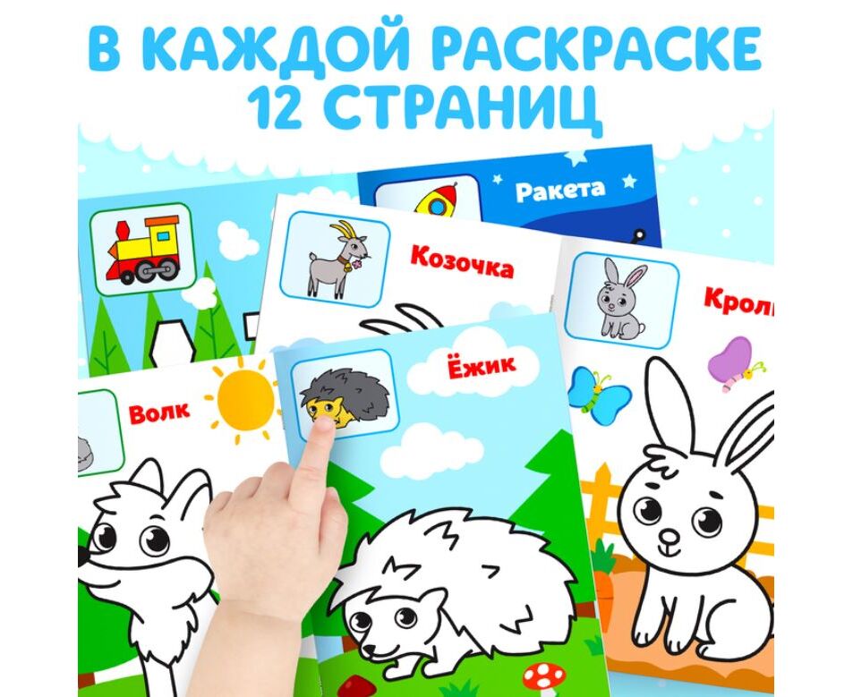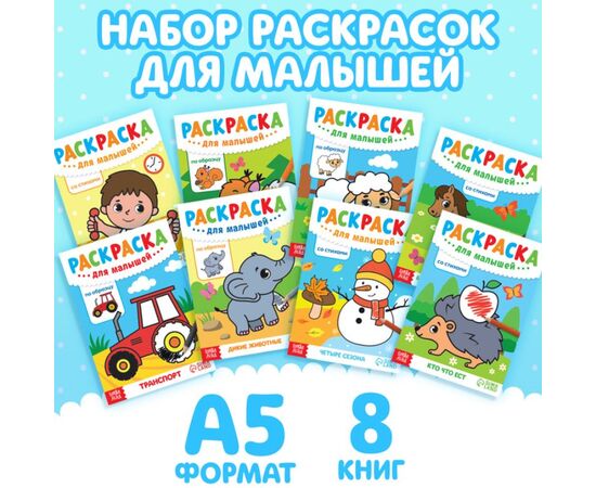 Раскраски для малышей набор, 8 шт. по 12 страниц