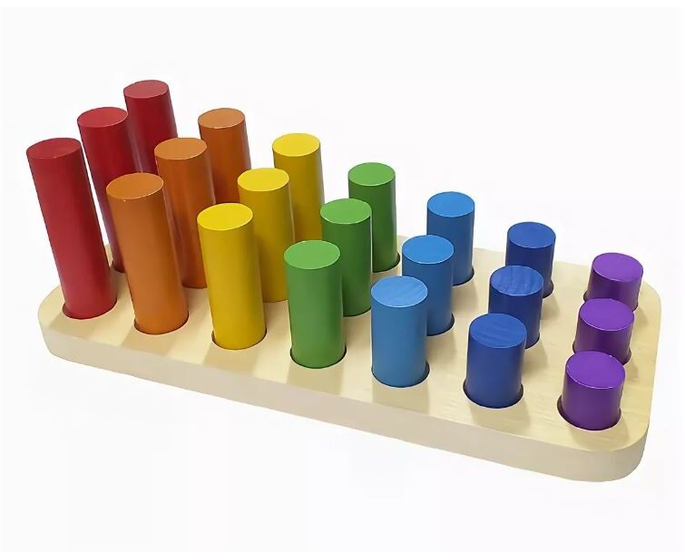 Развивающая игрушка из дерева "Цилиндры радуга. 3 ряда"