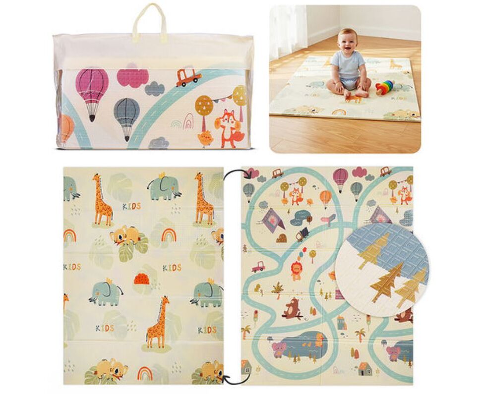 Развивающий двухсторонний коврик в сумке "Веселые животные", 180 х 150 см