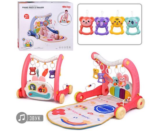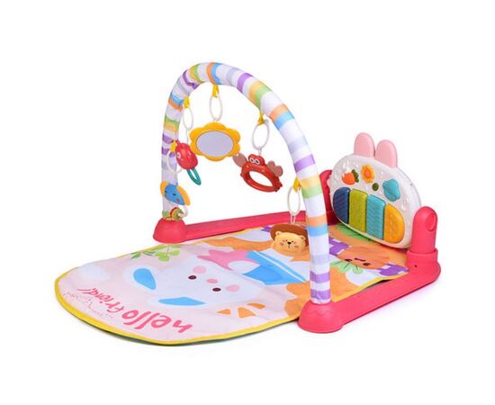 Развивающий коврик-каталка с пианино и погремушками, цвет розовый