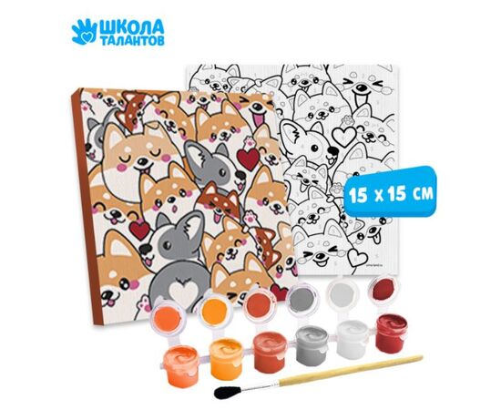 Роспись по холсту "Корги" 15х15см, 6 цветов