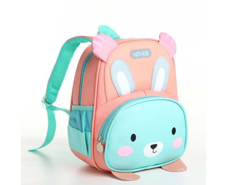 Рюкзак детский "Зайчик", на молнии, размер 23×10×28 см, розовый/бирюзовый