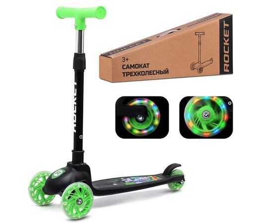 Самокат трехколесный ROCKET, колеса полиуретановые, цвет черный