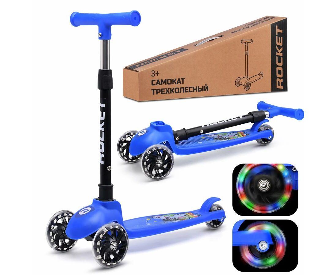 Самокат трехколесный ROCKET, колеса полиуретановые, цвет синий