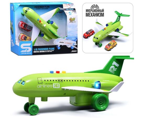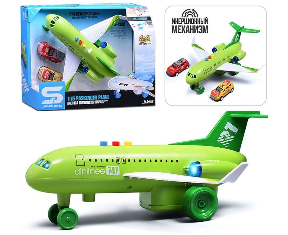 Самолет со светом, звуком "Пассажирский", цвет зеленый