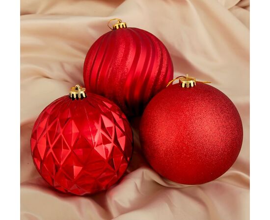 Шары новогодние "Ассорти", цвет красный, d=15 см, 3 шт