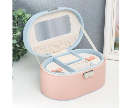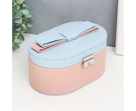 Шкатулка для украшений "Бант", с зеркалом, искусственная кожа, с замком, персиково-голубая