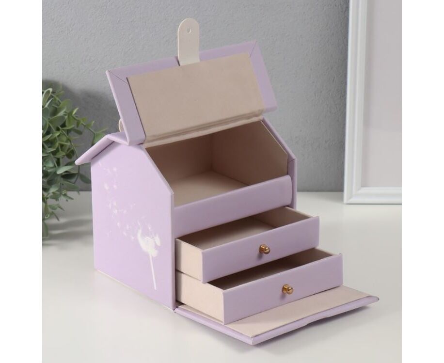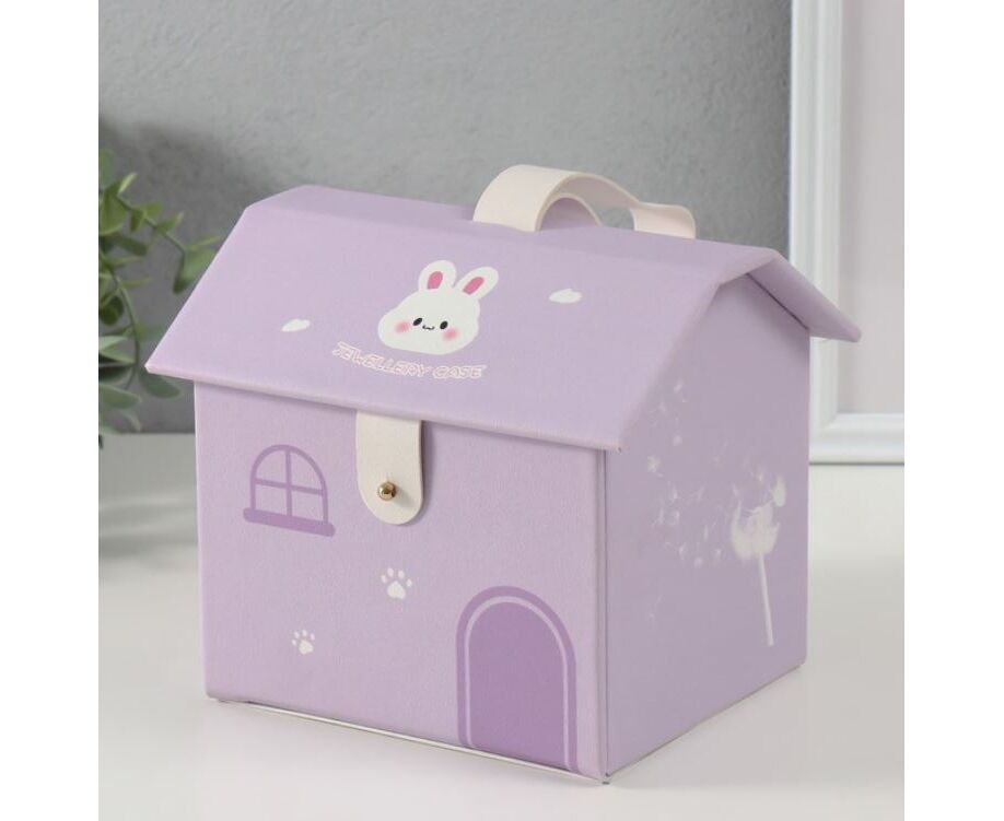 Шкатулка для украшений "Домик. Зайка", искусственная кожа, сирень, 16.5×19×16.5 см
