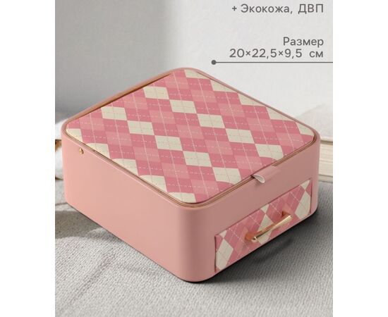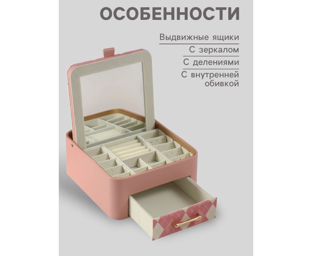 Шкатулка для украшений "Клетка", с зеркалом, искусственная кожа, розовая, 20×22.5×9.5 см