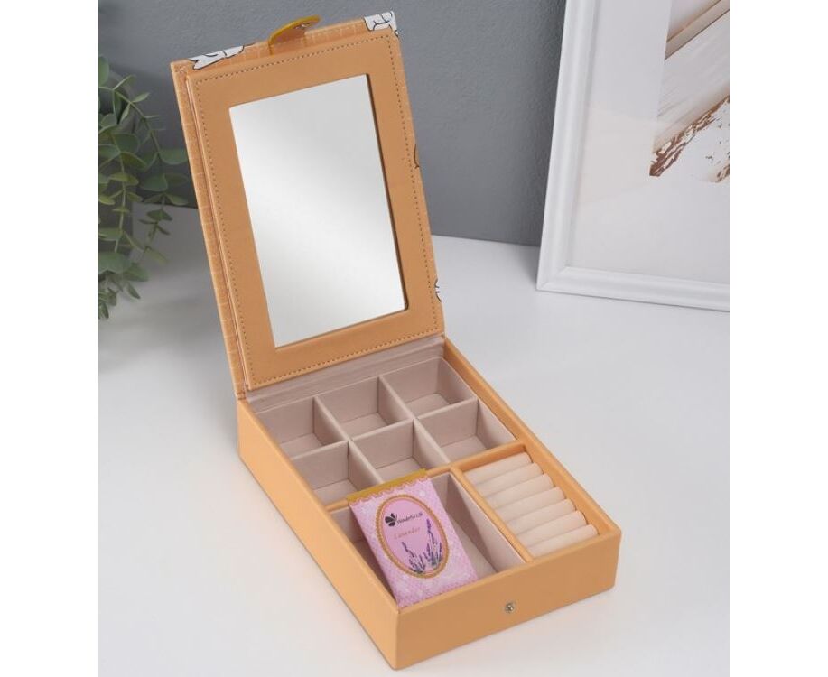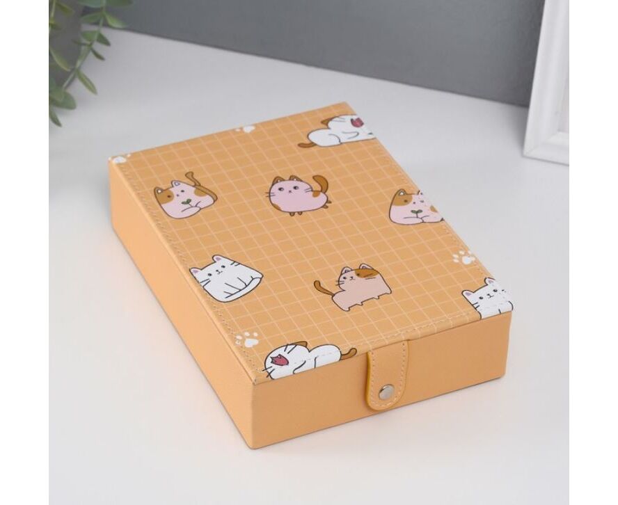 Шкатулка для украшений "Котики", с зеркалом, искусственная кожа, жёлтая, 15×21.5×5.5 см