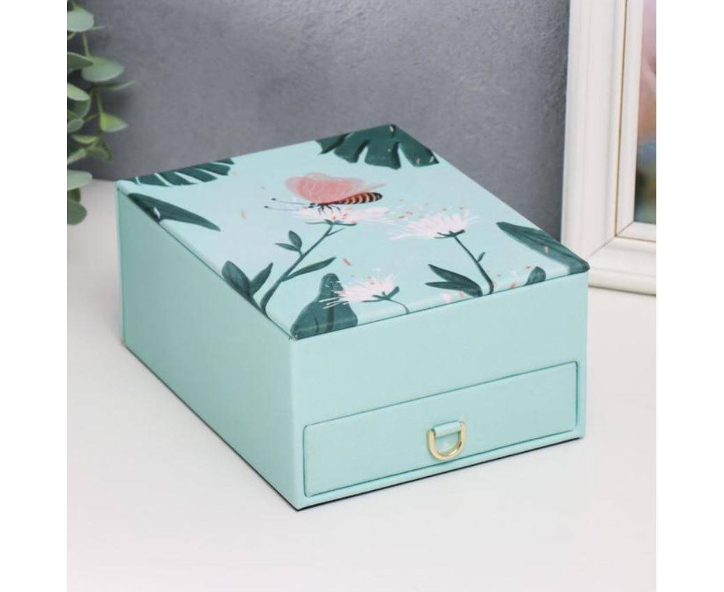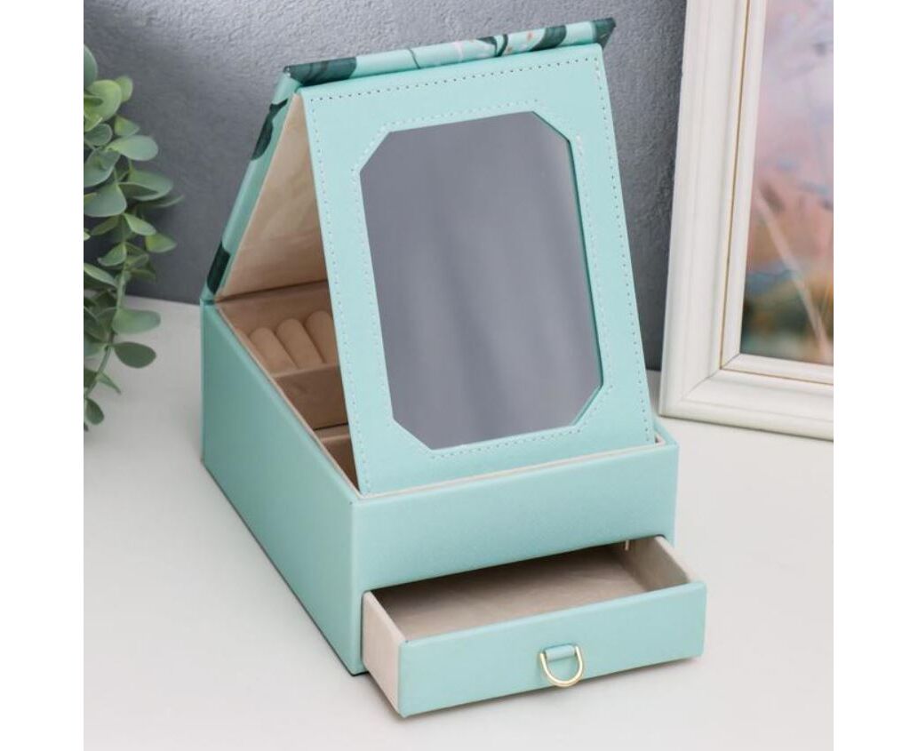 Шкатулка для украшений "Одуванчики и пальмовые листья", с зеркалом, искусственная кожа