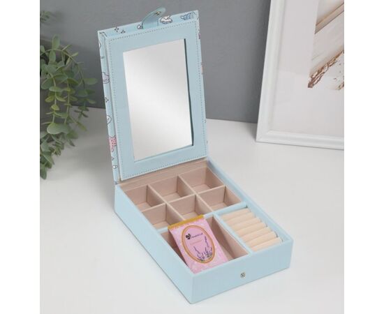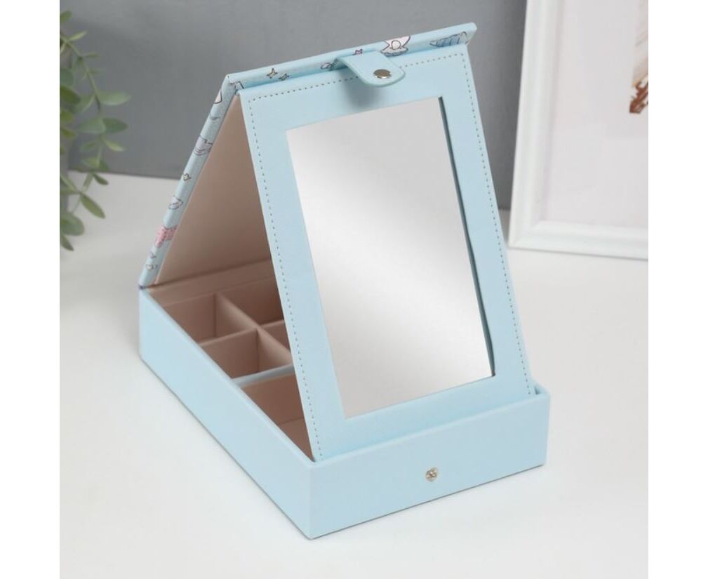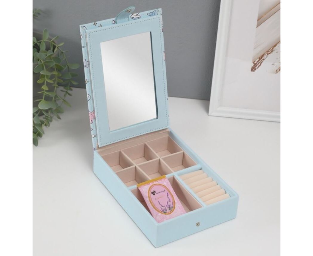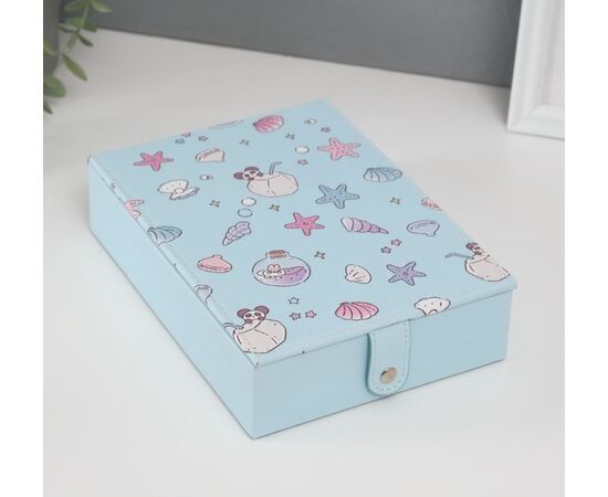 Шкатулка для украшений "Панда и ракушки", с зеркалом, искусственная кожа, голубая, 15×21.5×5.5 см