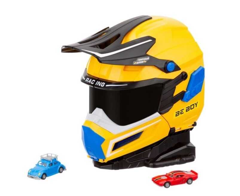 Шлем - трек "Гонки", со светом, звуком, цвет желто-синий