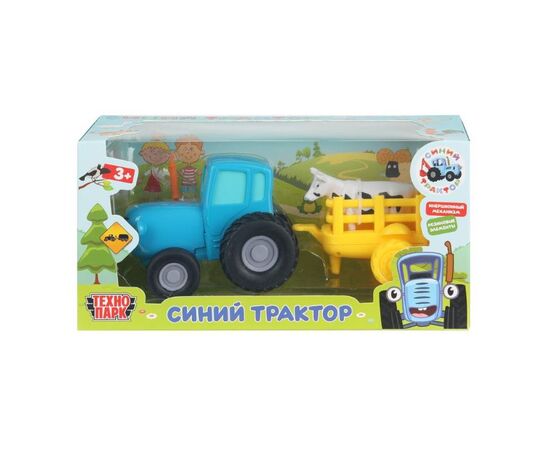 Синий Трактор с телегой и коровой, 11 см