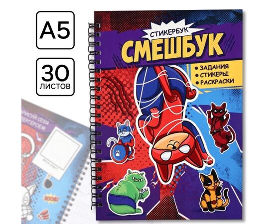 Смэшбук со стикерами А5, 30 листов «Супер коты»