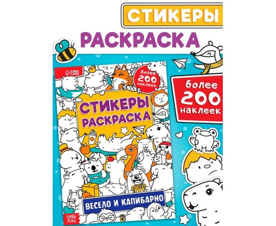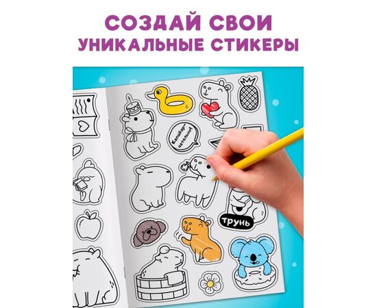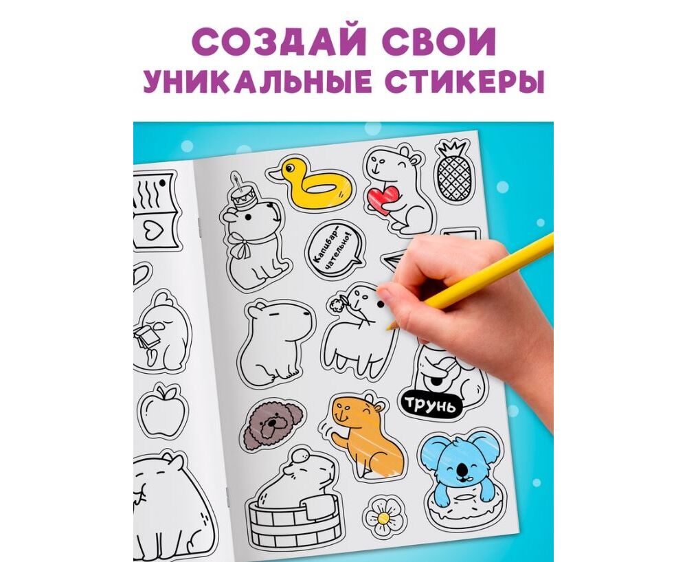 Стикеры-раскраска "Весело и капибарно", более 200 наклеек