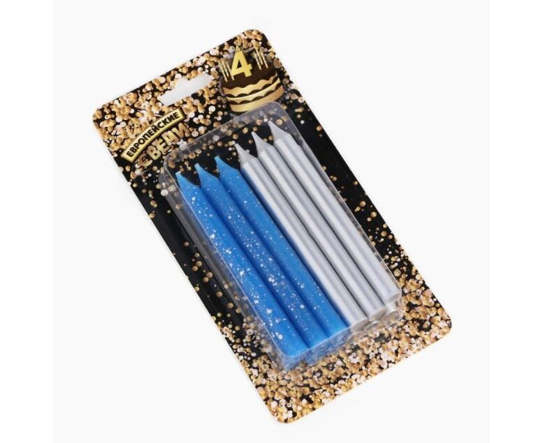 Свеча для торта "Спарк. Синий и серебряный металлик" 12 штук по 8 см