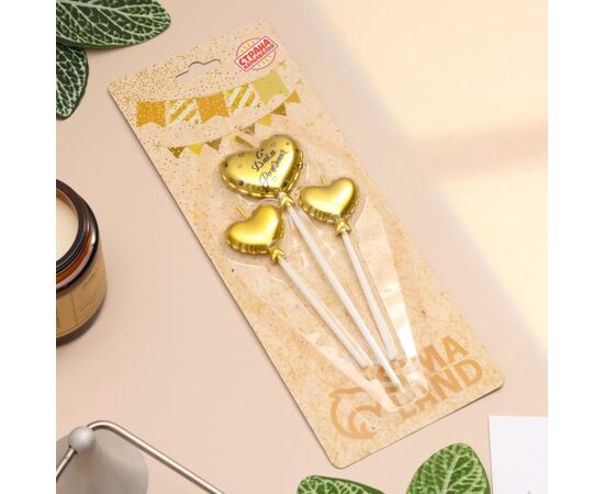Свечи для торта "Воздушные шарики. Сердца" 3 штуки