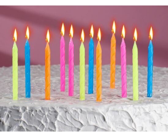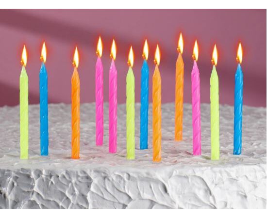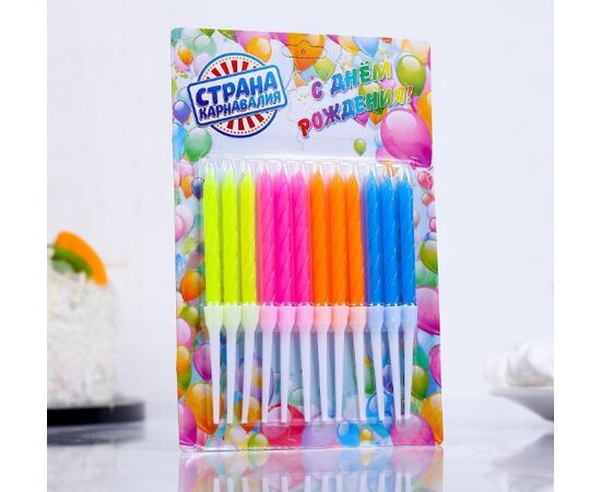 Свечи в торт "Неон", 7 см, 12шт с подставкой