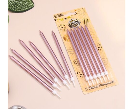 Свечи в торт "С днём рождения" 6 шт, 14 см, розовый металлик