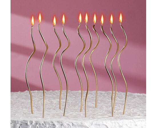 Свечи в торт "Серпантин", 10 шт, коктейльные, золотистые
