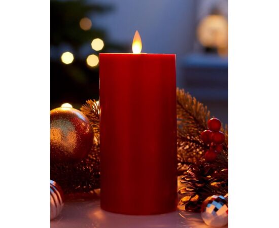 Светодиодная свеча восковая "Глубокий красный", 17 см