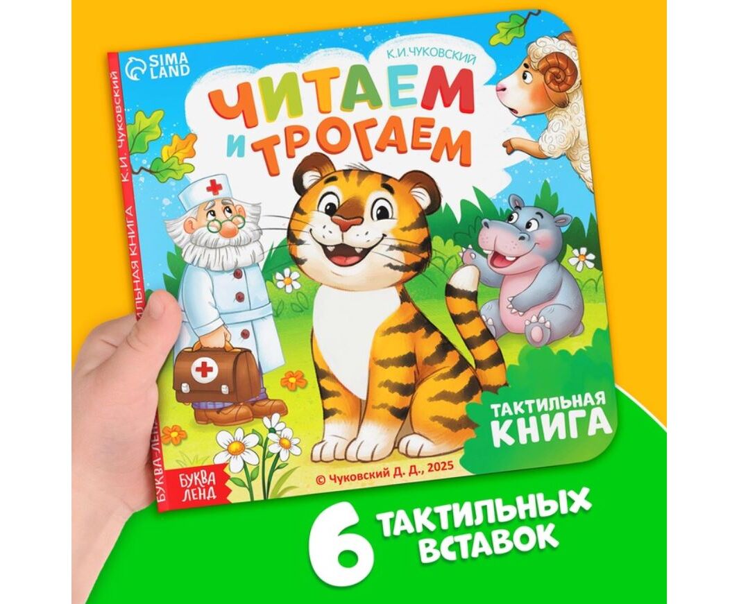 Тактильная книга "Сказки. Корней Чуковский", 12 страниц