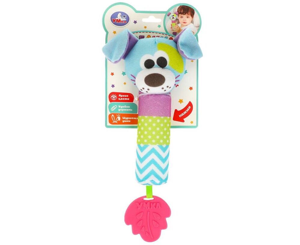 Текстильная игрушка погремушка-пищалка "Собака. Фиолетово-голубая"