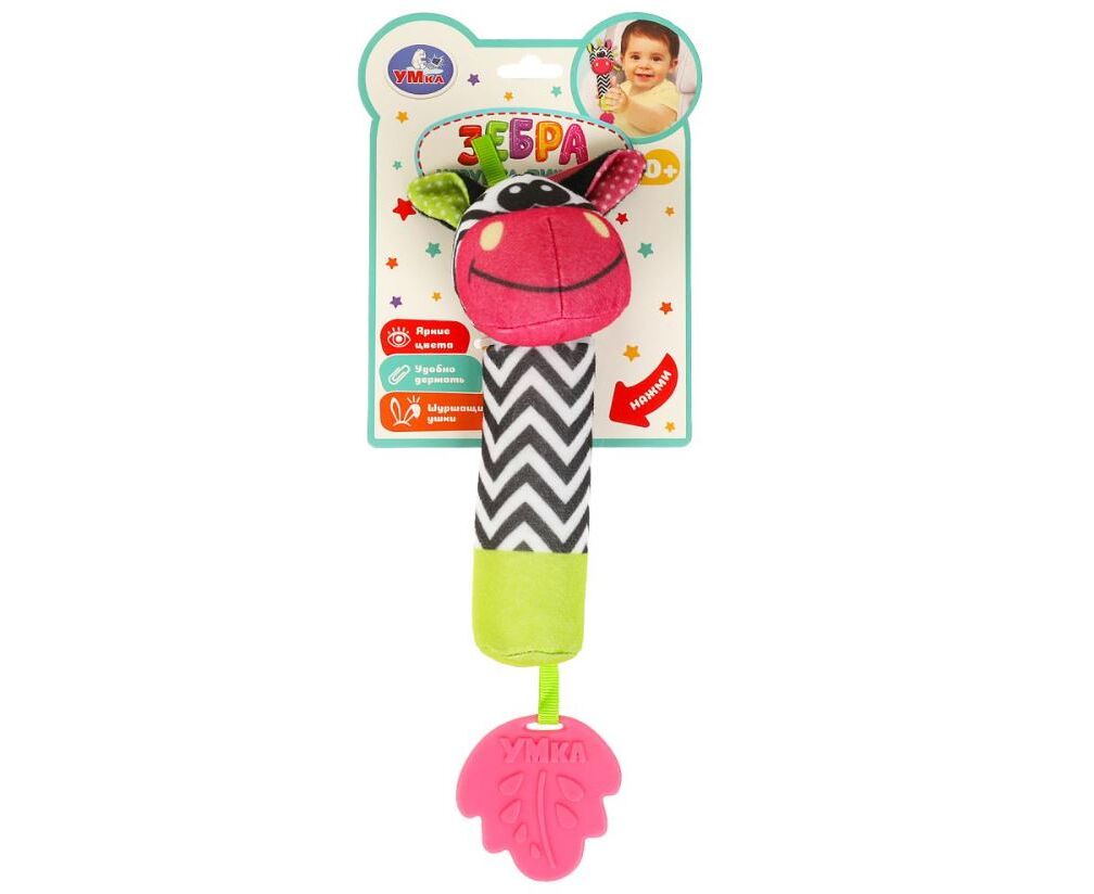 Текстильная игрушка погремушка-пищалка "Зебра"