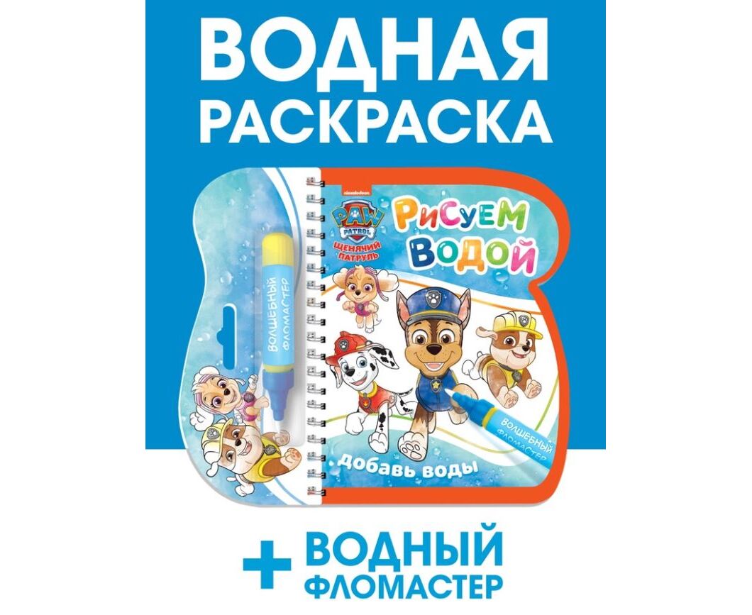 Водная раскраска многоразовая "Щенячий патруль", 12 страниц